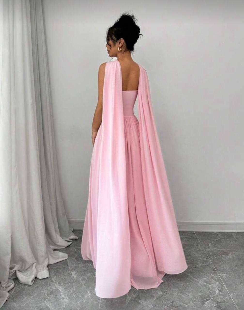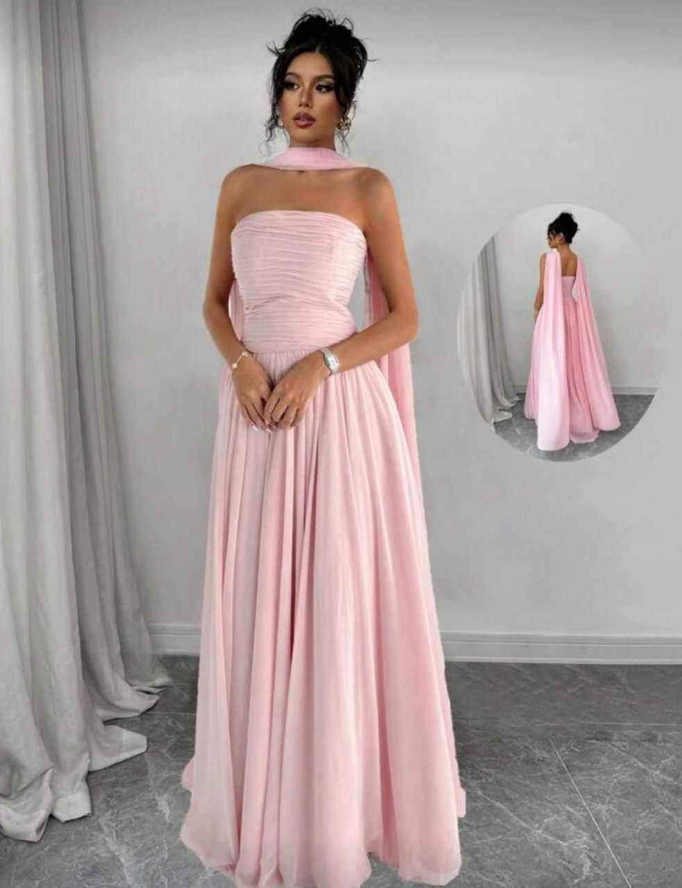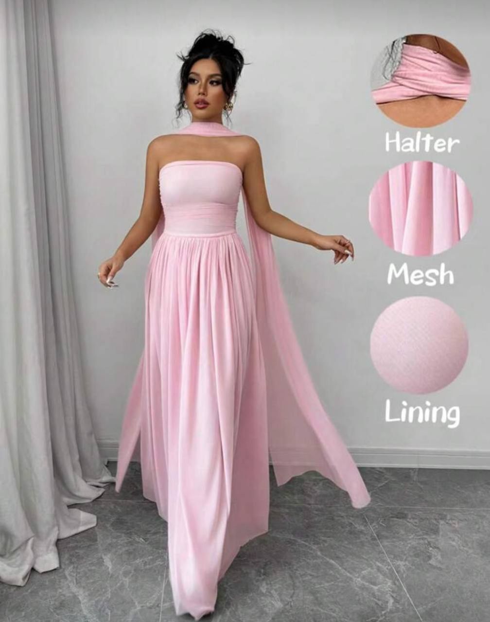 Selianne فستان طويل أنيق للنساء بقصة ماكسي بدون أكمام ولون واحد مع تفاصيل طيات، قطعة واحدة