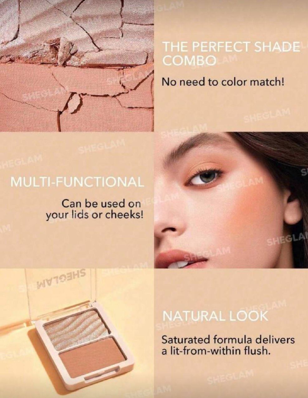 SHEGLAM مجموعة بودرة هايلايتر وأحمر خدود هجينة من Glam 101- Blush Highlighter Powder Palette غير قابلة للتلاشي ومتعددة الاستخدامات وغير دهنية ولامعة وخفيفة الوزن وناعمة أحمر خدود Pink Brown Rosa Blush حمره علامة تجارية جمال مكياج مستحضرات تجميل للنساء الفتيات مثالي لفصل الخريف الشتاء مثالي ل- Y2K أزياء أنيقة هدية حفلة جاهز أفضل لون