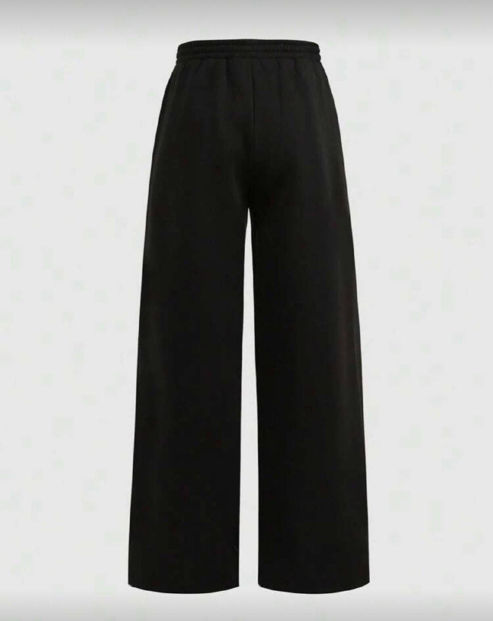 0 Review Of Product SHEIN بناطيل رياضية مريحة للفتيات المراهقات، مصنوعة من قماش ناعم مبطن بالفليس، ذات ساق مستقيمة وواسعة، لون أسود، للأطفال