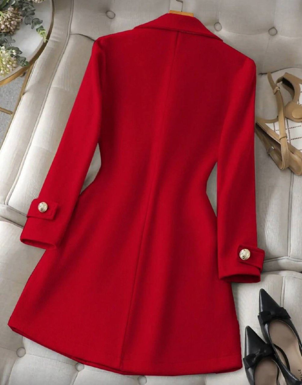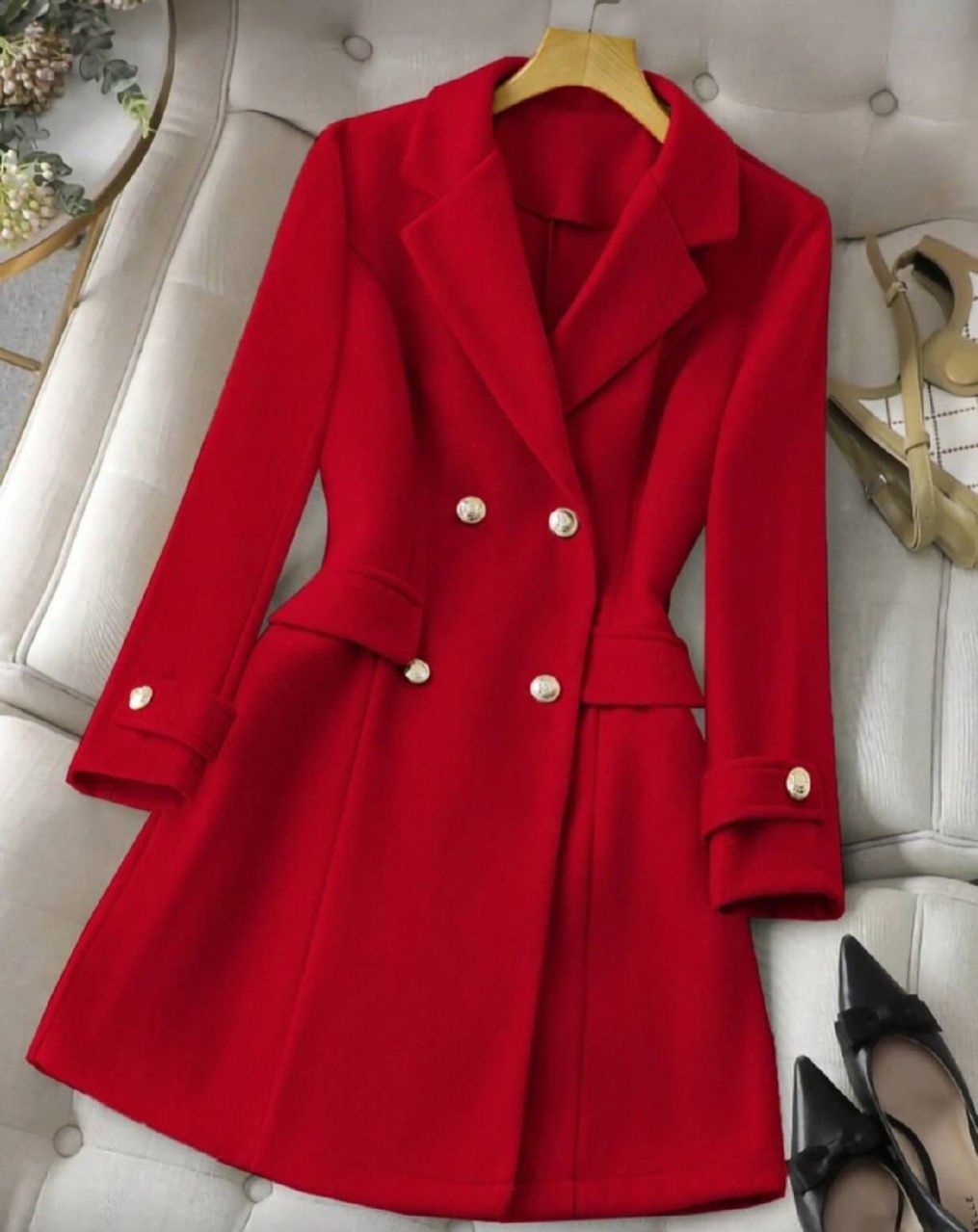 0 Review Of Product SHEIN Clasi معطف نسائي عادي أحادي اللون مزدوج الصدر، مناسب للخريف/الشتاء لملابس رأس السنة الجديدة