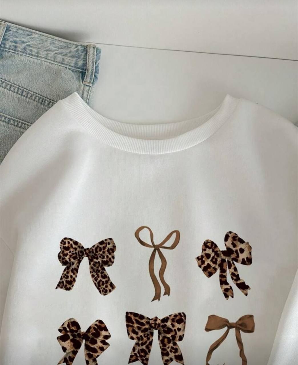 SHEIN EZwear كاجوال طراز الرومانية الحديث الفهد الأمريكي أربطة طباعة صدرية كبيرة فضفاضة سميكة البلوزة الرياضية للنساء ، بأكمام طويلة