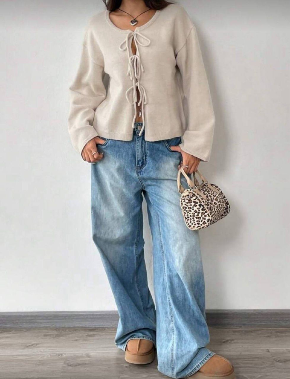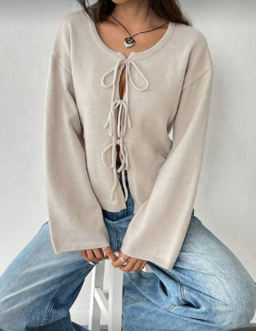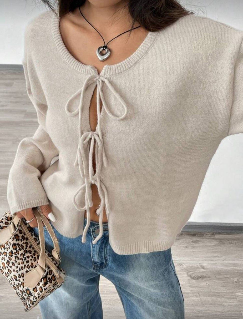 SHEIN EZwear كارديجان بأكمام طويلة وعقدة لون واحد للسيدات، مناسب للتنقل والحد الأدنى والارتداء في المكتب، بلون الأموال القديمة، بسيط، كارديجان بأربطة أمامية من الأصواف ذات لون واحد، يمكن ارتداؤه فوق التي شيرت، ملابس علوية بأكمام طويلة، ملابس علوية مناسبة للمدرسة في الخريف/الشتاء