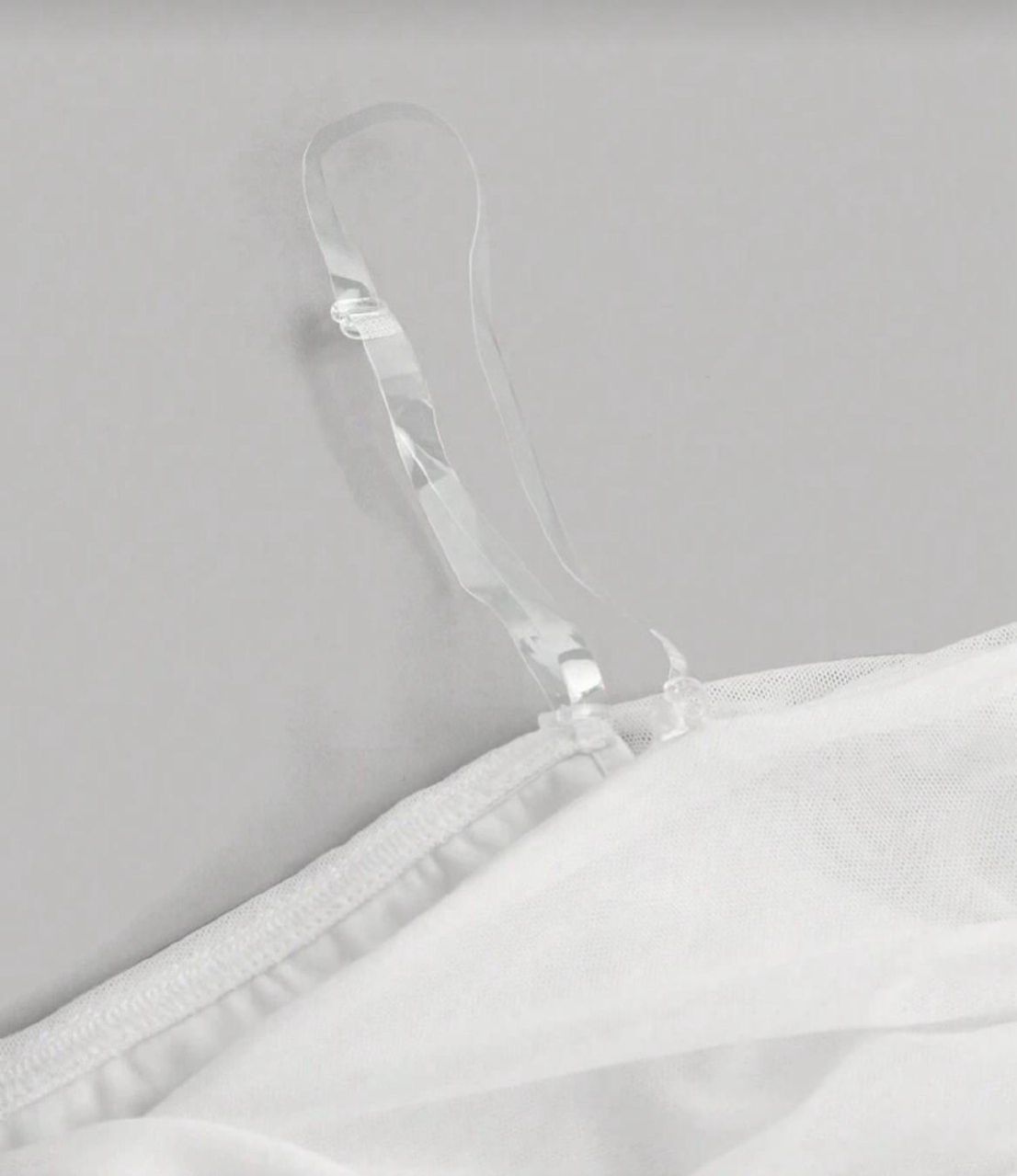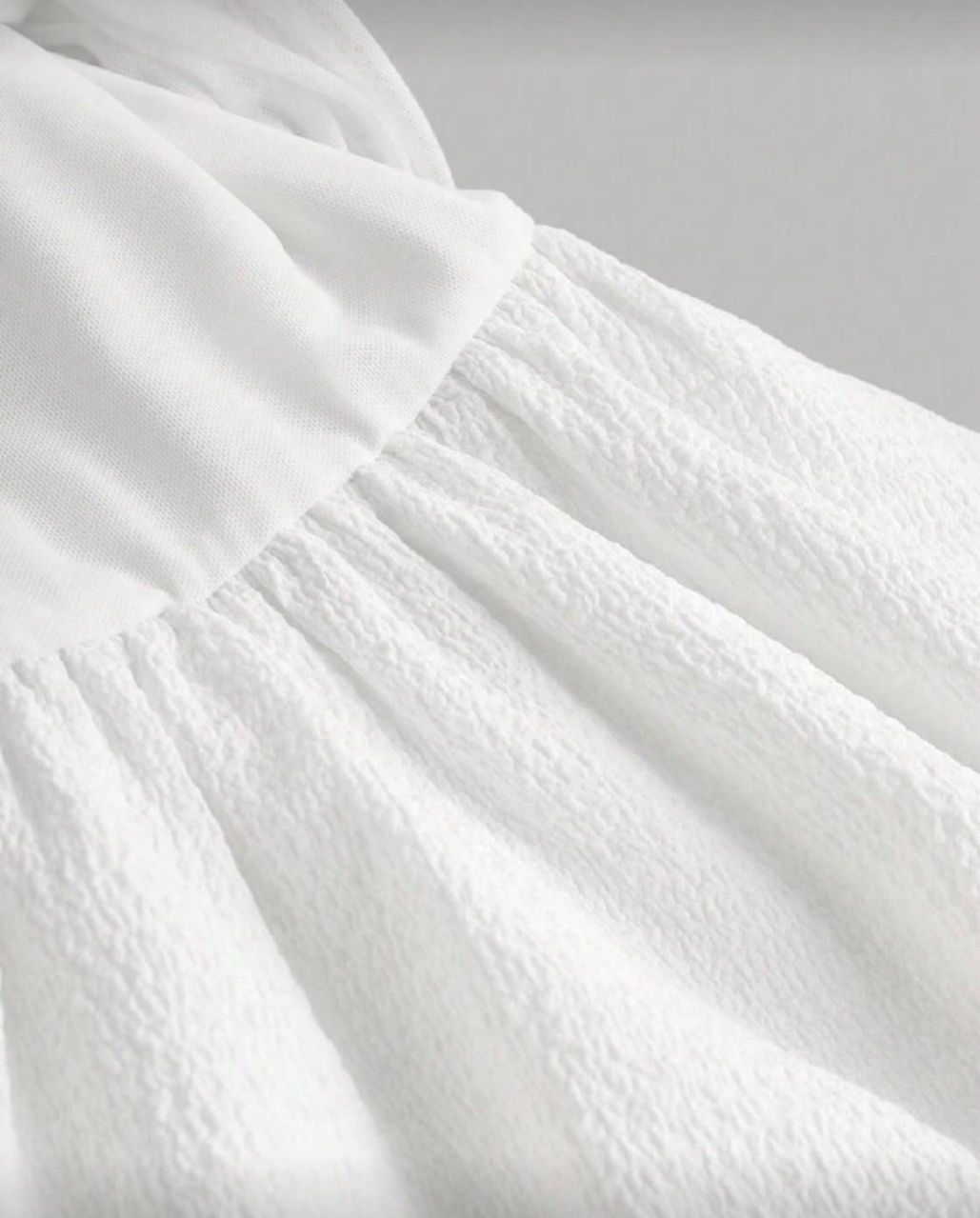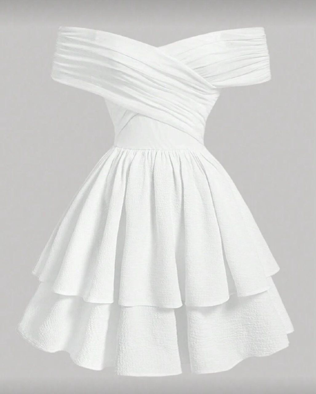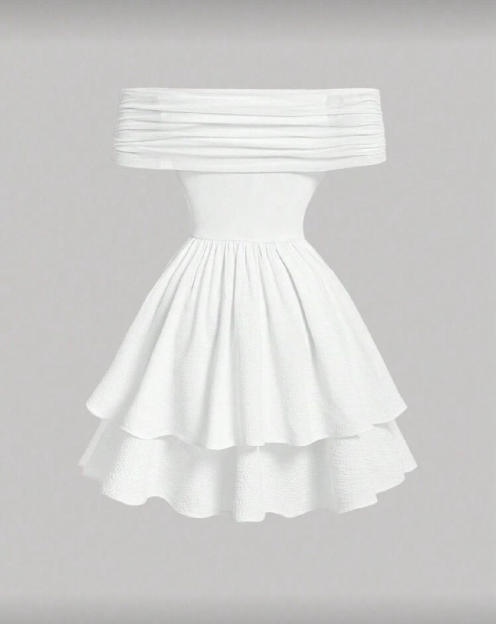 SHEIN Girlism فستان خروج للبنات المراهقات أبيض الكتف مفتوح الرقبة بتقاطع، خصر مجمّع على شكل خط A، طبقات من أوراق اللوتس، أبيض نقي , طقم أبيض كامل بتفاصيل