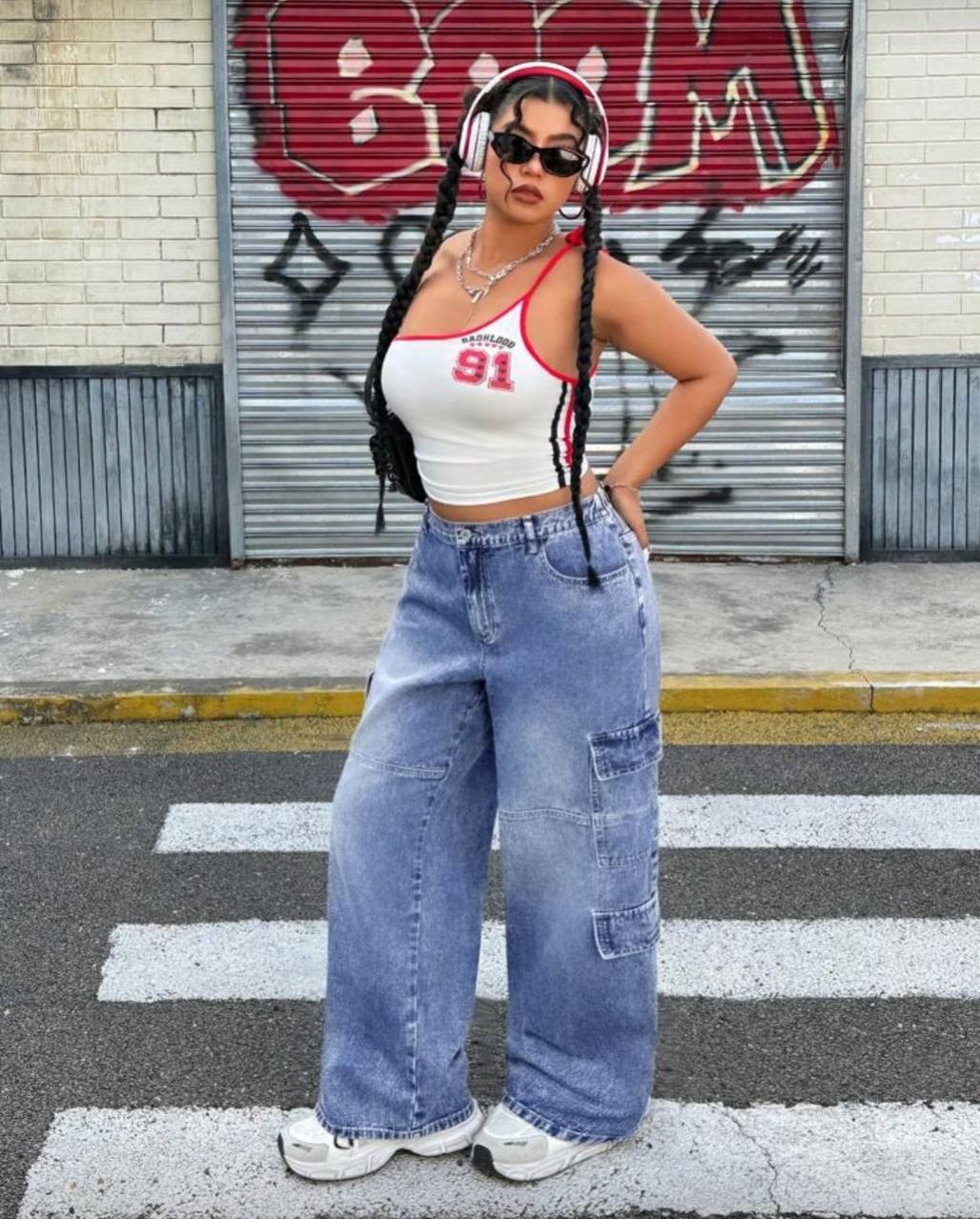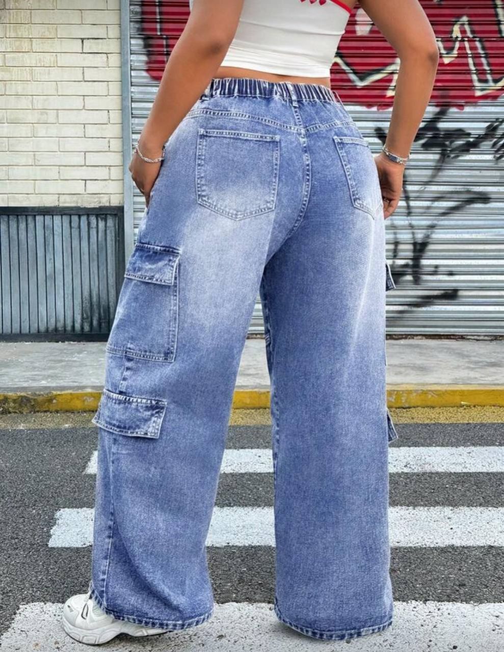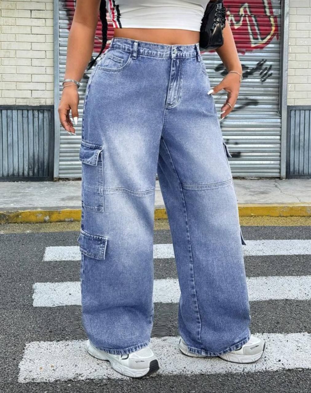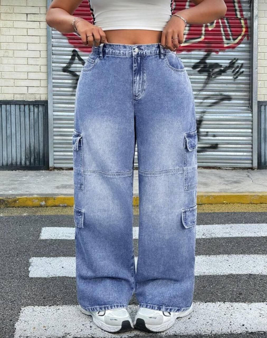 SHEIN ICON بنطلون جينز بقصة واسعة معزز بأزرار علوية وجيوب متعددة، من البطانة العادية المغسولة