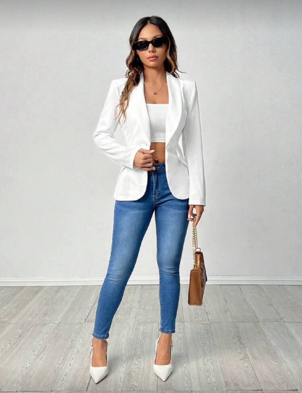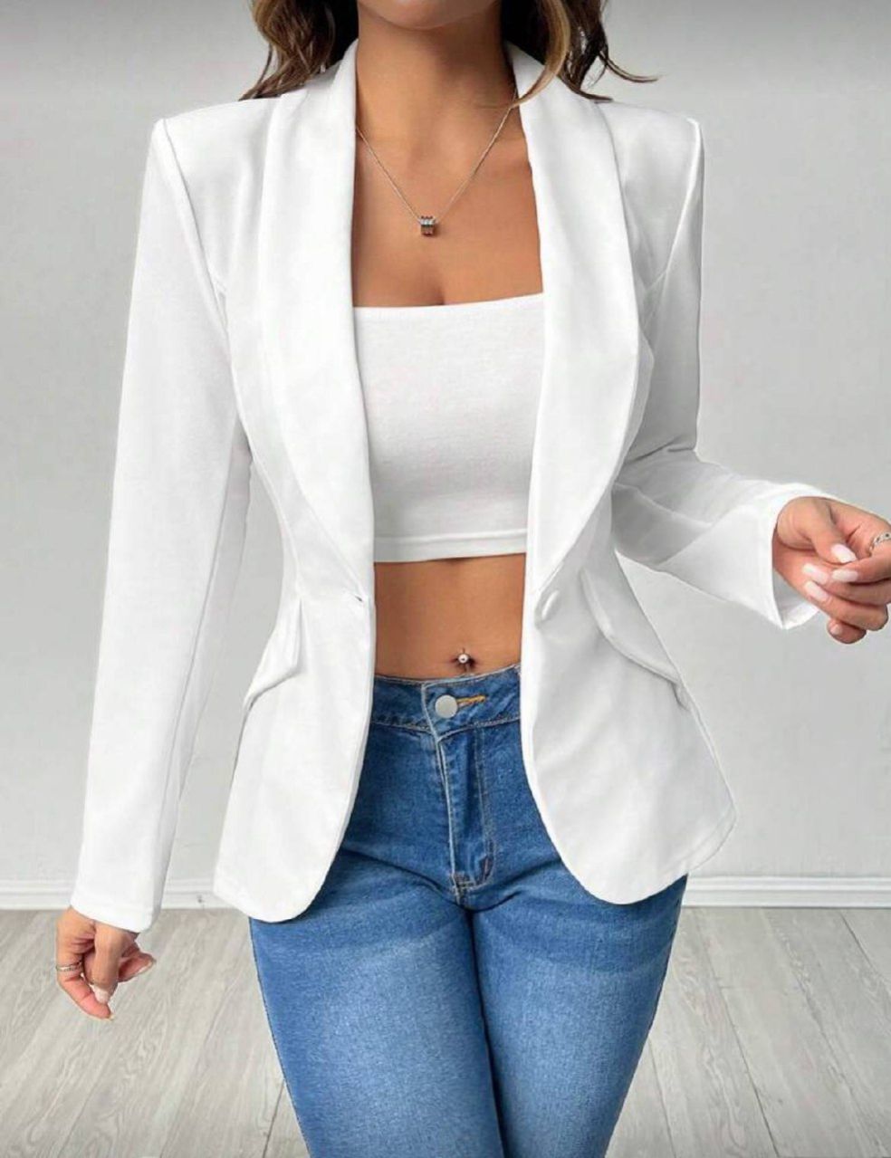 0 Review Of Product SHEIN PETITE بدلة ذات ياقة شال وزر واحد مناسبة للارتداء في فصلي الخريف والشتاء للتنقل