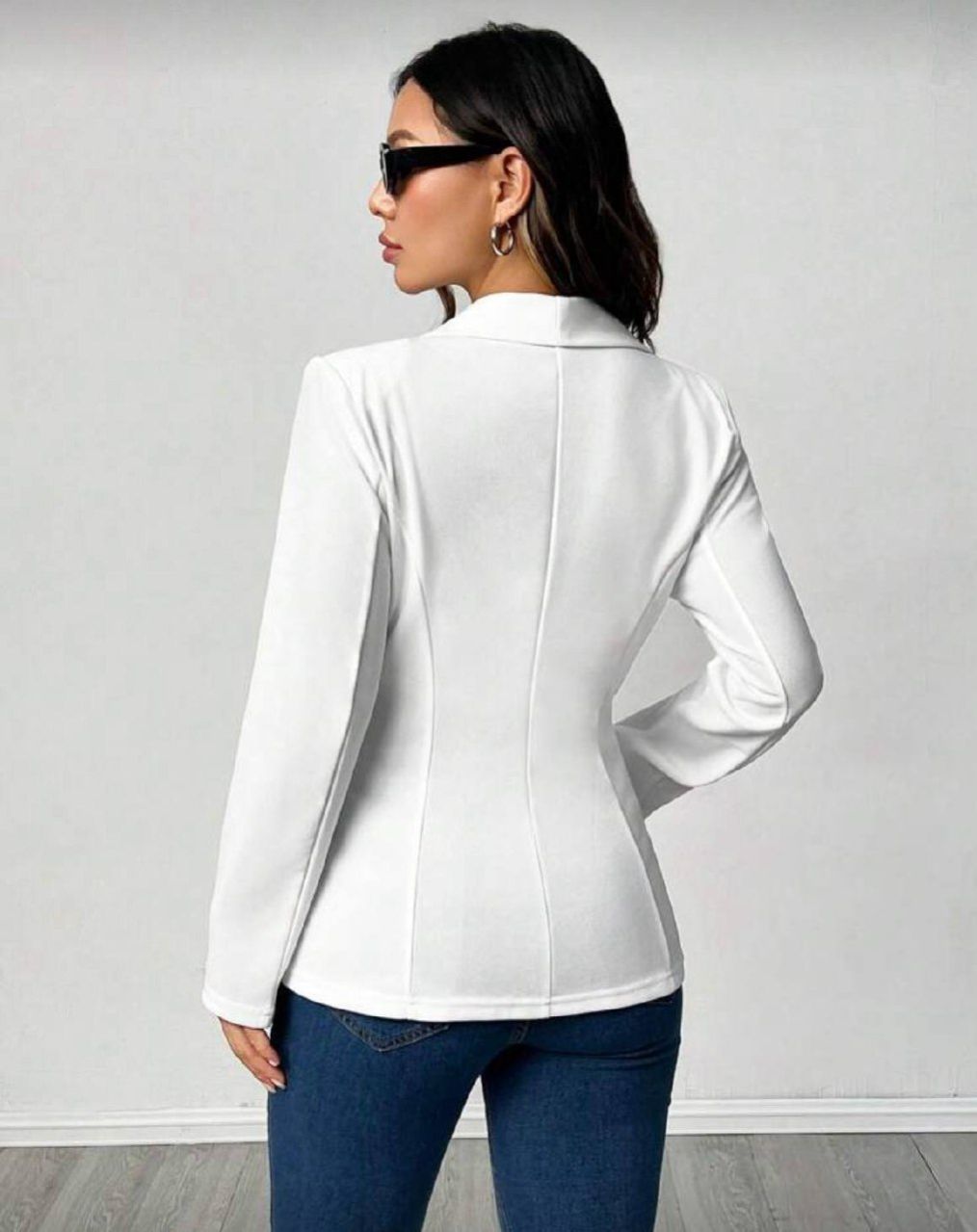 SHEIN PETITE بدلة ذات ياقة شال وزر واحد مناسبة للارتداء في فصلي الخريف والشتاء للتنقل