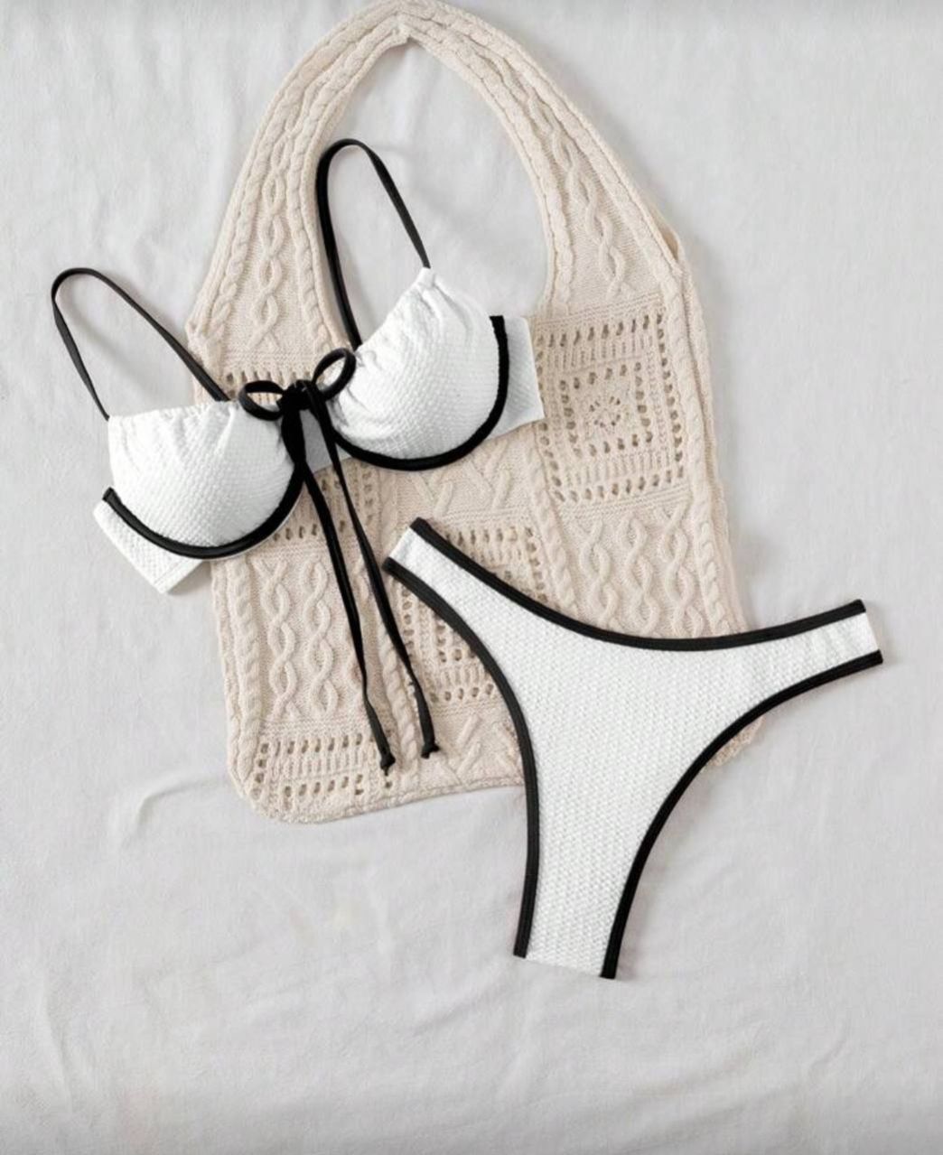 0 Review Of Product Swim Basics بدلة سباحة مجموعة نسائية ذات تصميم محايد باللون المتباين للعطلات والشاطئ