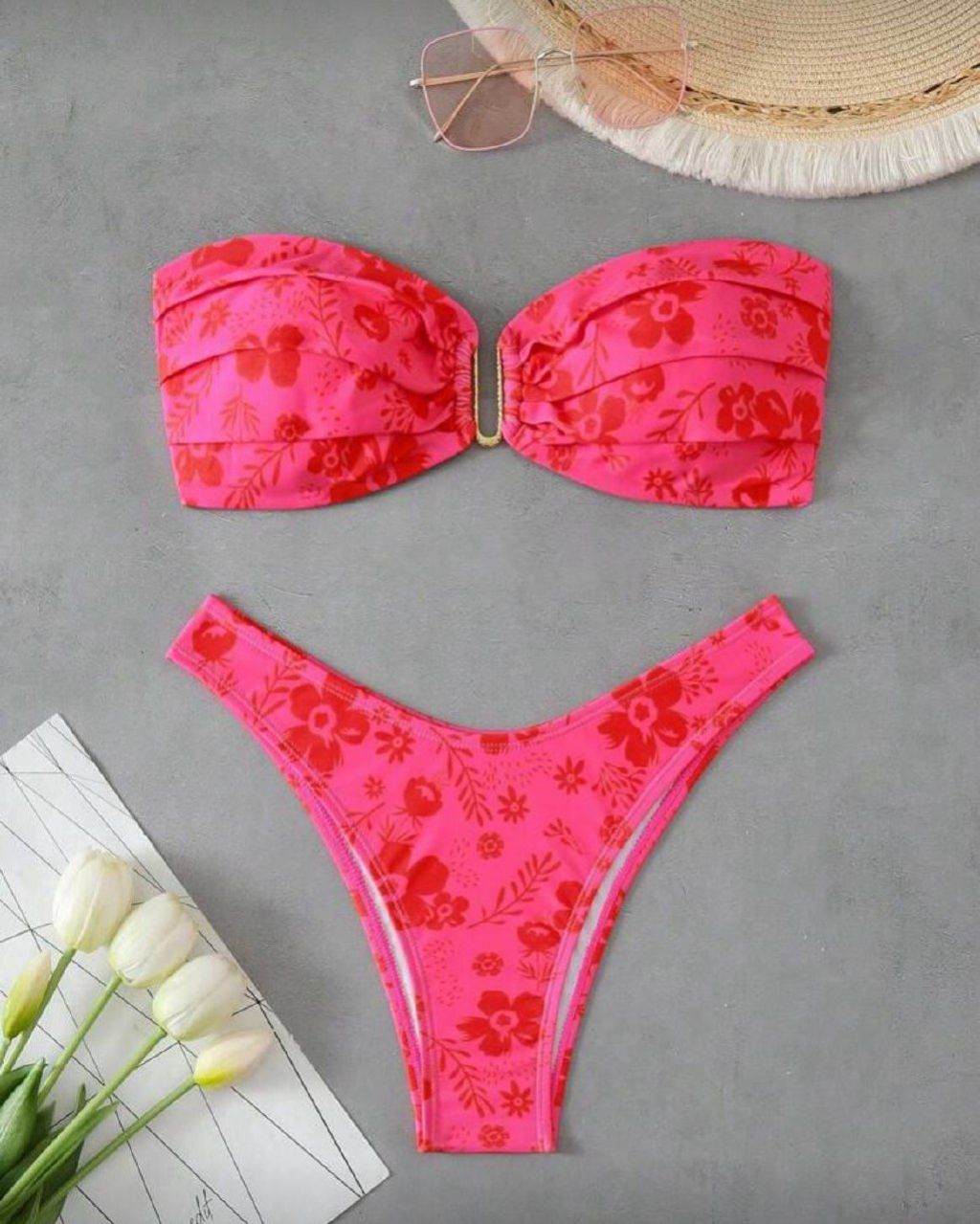 0 Review Of Product Swim Mod بيكيني نسائي مطبوع بالأزهار من قطعتين بقصة هالتر مفتوقة
